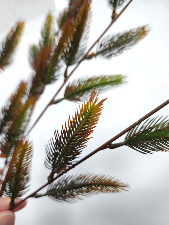 Inspired by the natural elegance of hemlock conifer foliage, this artificial branch features lifelike needle leaves in rich green, frosty gray, or autumnal brown hues. Perfect for seasonal arrangements, window displays, indoor landscaping, and rustic-themed dΓ©cor. Custom colors and stem lengths are available.