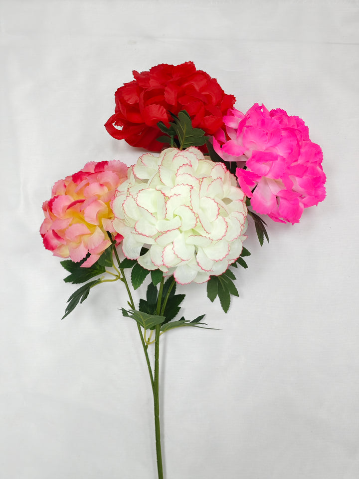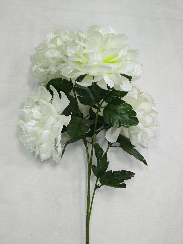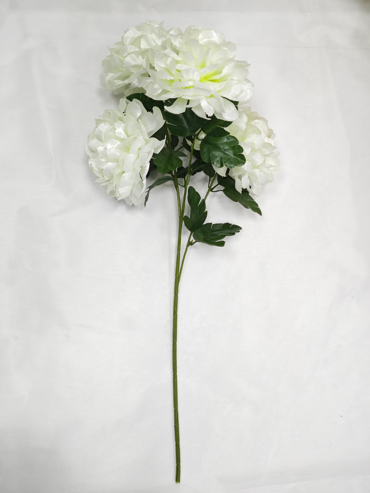 This artificial large round chrysanthemum stem features four full-bodied flower heads with layered petals made of glossy silk fabric, including special shimmer-effect options. The bloom size and intricate texture make this product an ideal choice for weddings, festive decorations, retail floral displays, or elegant home arrangements. Offered in multiple color combinations, including classic white, red, pink, and gradient hues.