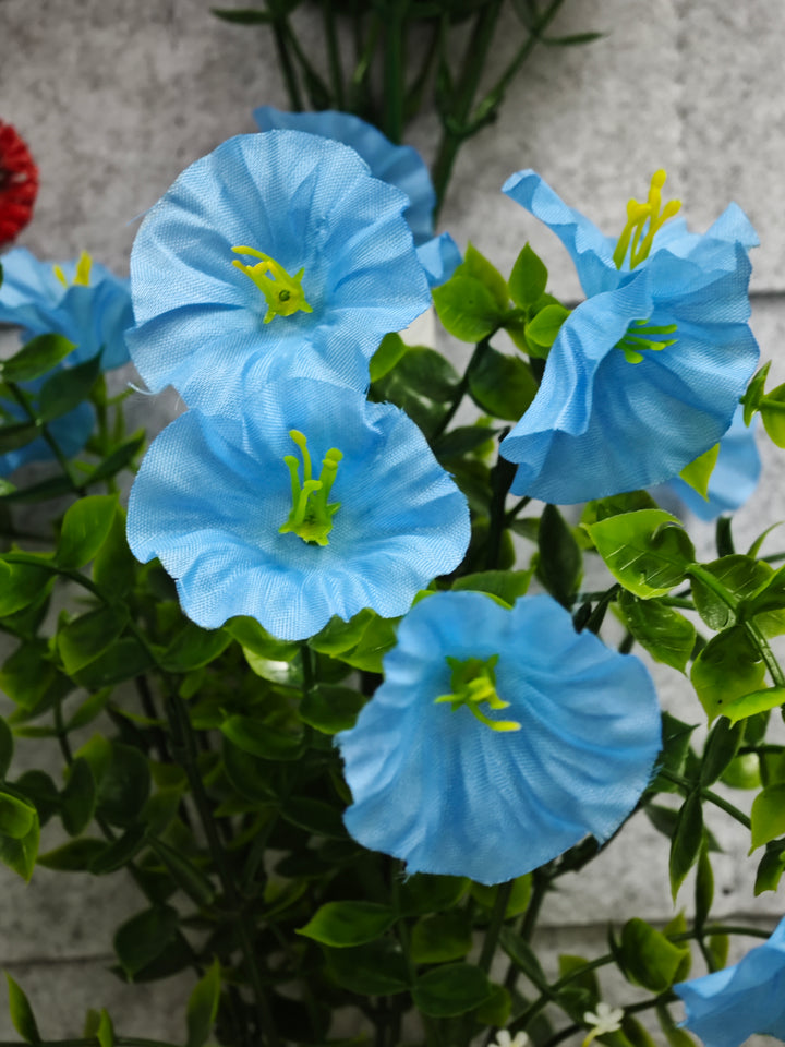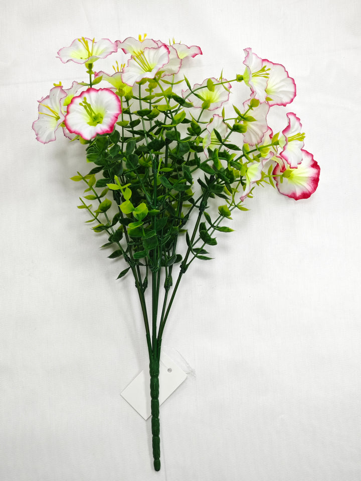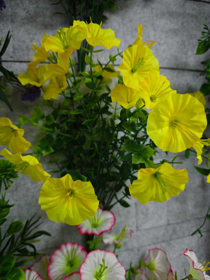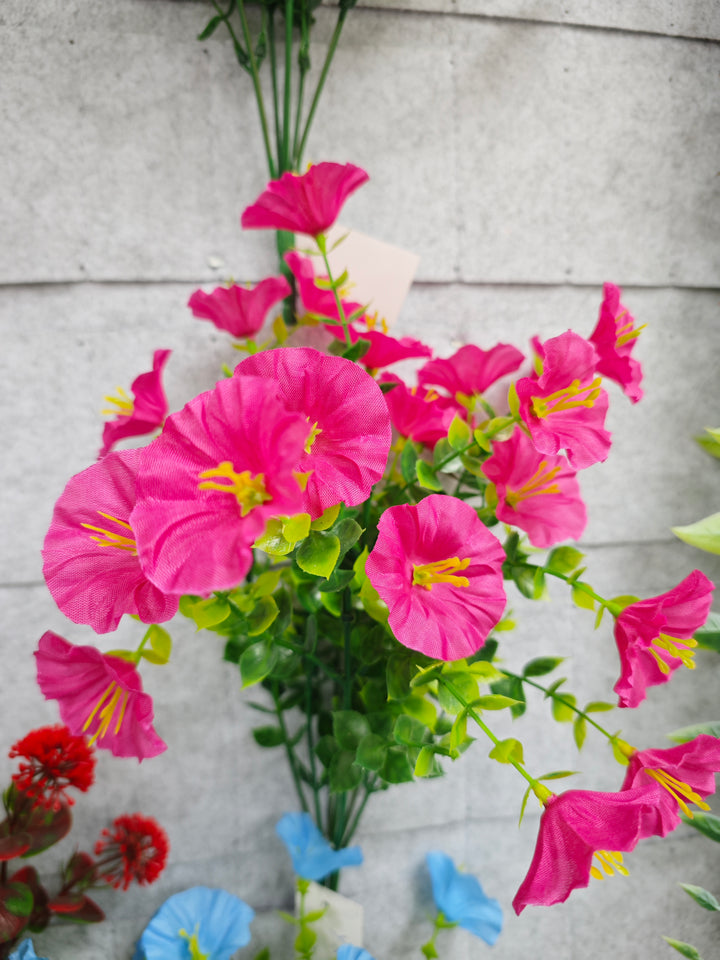 Bright and delicate, our artificial morning glory bush features 7 vibrant flower heads and lush green foliage. Made from soft-touch polyester fabric with vivid color options including pink, blue, yellow, and white-rimmed styles, this versatile bush is perfect for seasonal displays, retail decoration, bouquet assembly, and more. The flexible plastic stem ensures easy shaping and arrangement.