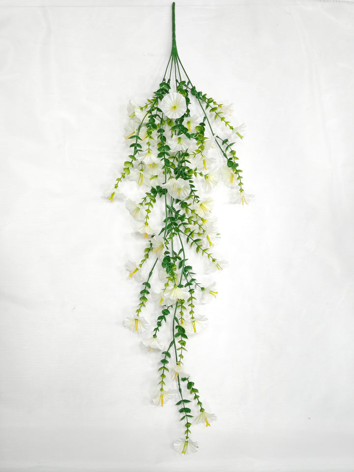 This artificial morning glory vine features 5 realistic trailing stems with vivid trumpet-shaped flowers and delicate foliage. Made from high-quality PE and silk cloth, it's lightweight, UV-resistant, and easy to hang. Ideal for weddings, backdrops, home decor, or retail displays. Available in a range of vibrant colors.