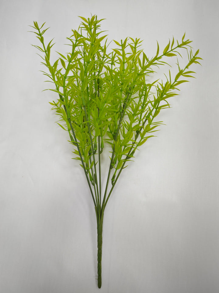 This artificial new leaf bamboo stem features thin, pointed foliage in a vibrant spring green hue. Designed to mimic real bamboo shoots, it adds a refreshing touch to modern interiors, spa settings, office lobbies, or floral arrangements. Lightweight, flexible, and maintenance-free.