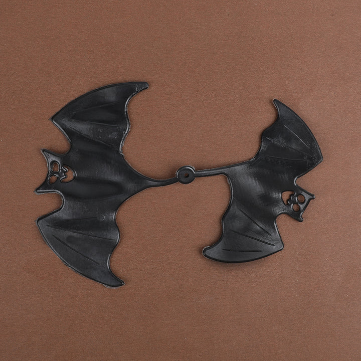 This black double-bat shaped embellishment is made of lightweight plastic and features a striking Halloween design, perfect for themed floral arrangements, party décor, and holiday crafts. With a flatback design and a central connecting ring, it can be easily glued or tied into wreaths, centerpieces, and artificial plant installations. Ideal for seasonal retailers, craft suppliers, or holiday wholesalers.